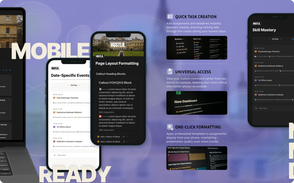 š± Works Everywhere:Ā Fully mobile-optimized for campus life. Add assignments between classes, check deadlines while studying, access everything from your phone.