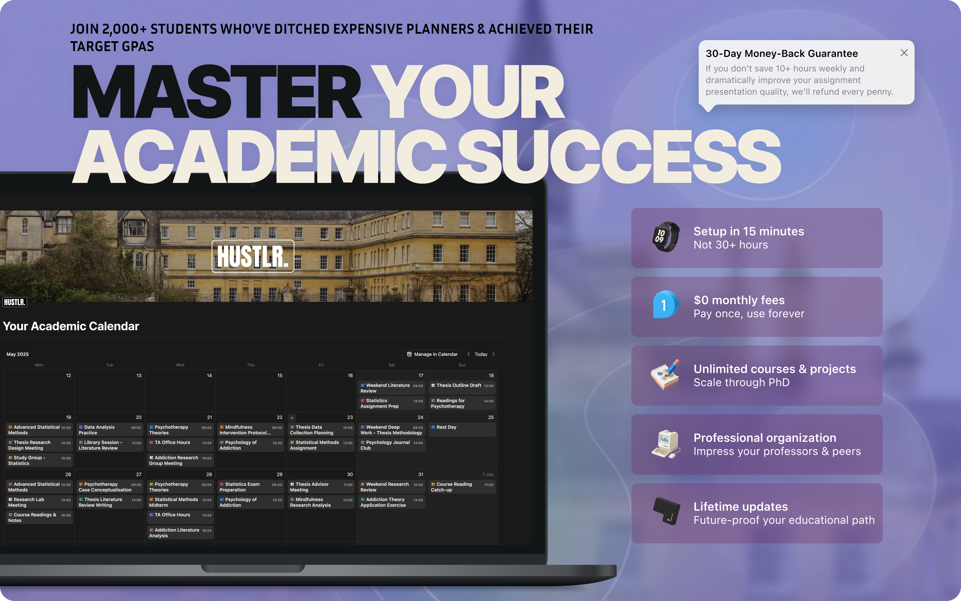 ā” Instant Results:Ā Save 15+ hours weekly, never miss another deadline, boost your GPA through better organization, and reduce academic stress to manageable levels.