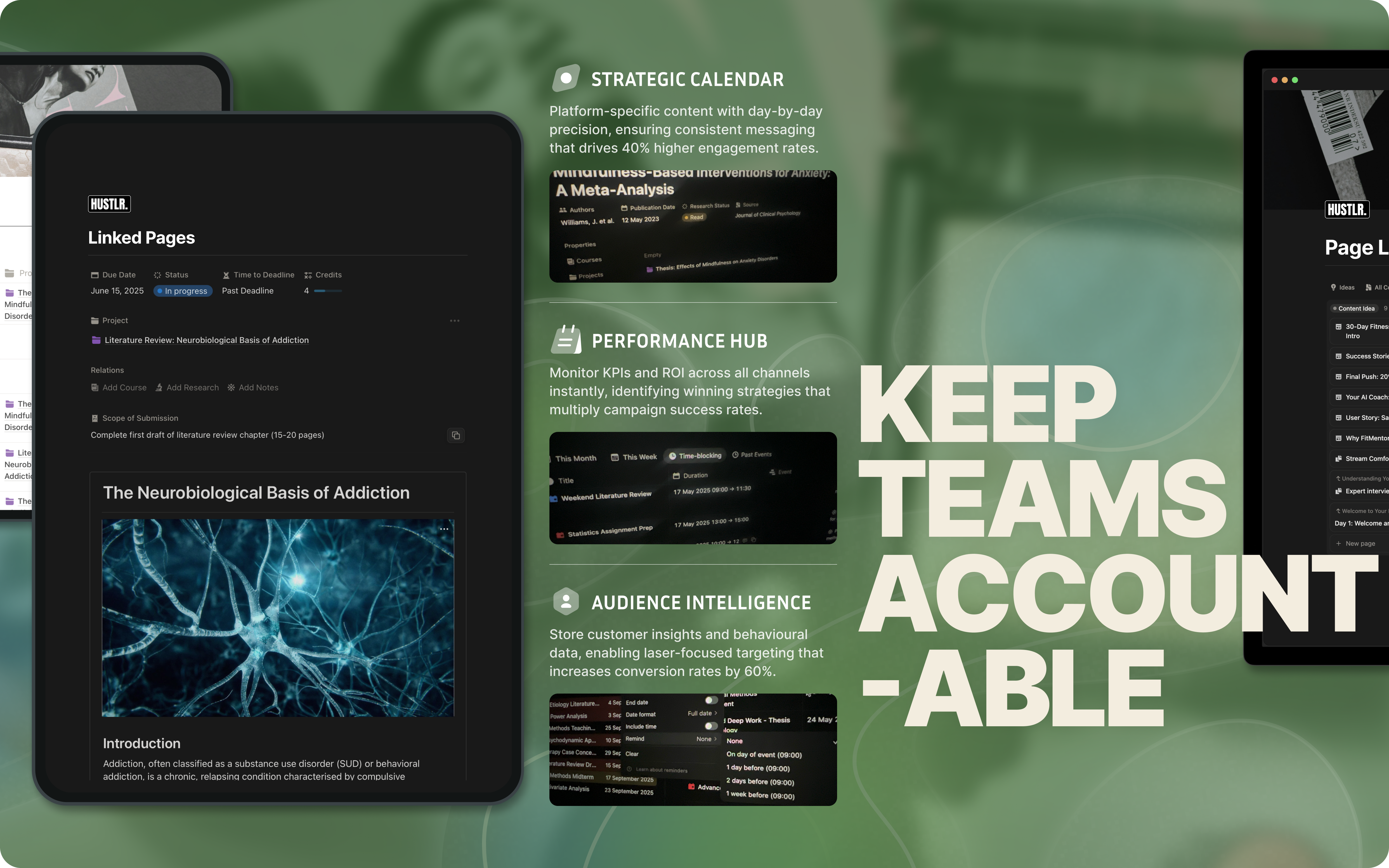 What sets this apart is the interconnected approach. Instead of managing campaigns in isolation, everything connects – budgets link to performance metrics, content calendars sync with campaign timelines, and audience insights inform strategy decisions. This ecosystem approach means you're not just organising your marketing; you're optimising it for maximum impact and efficiency.