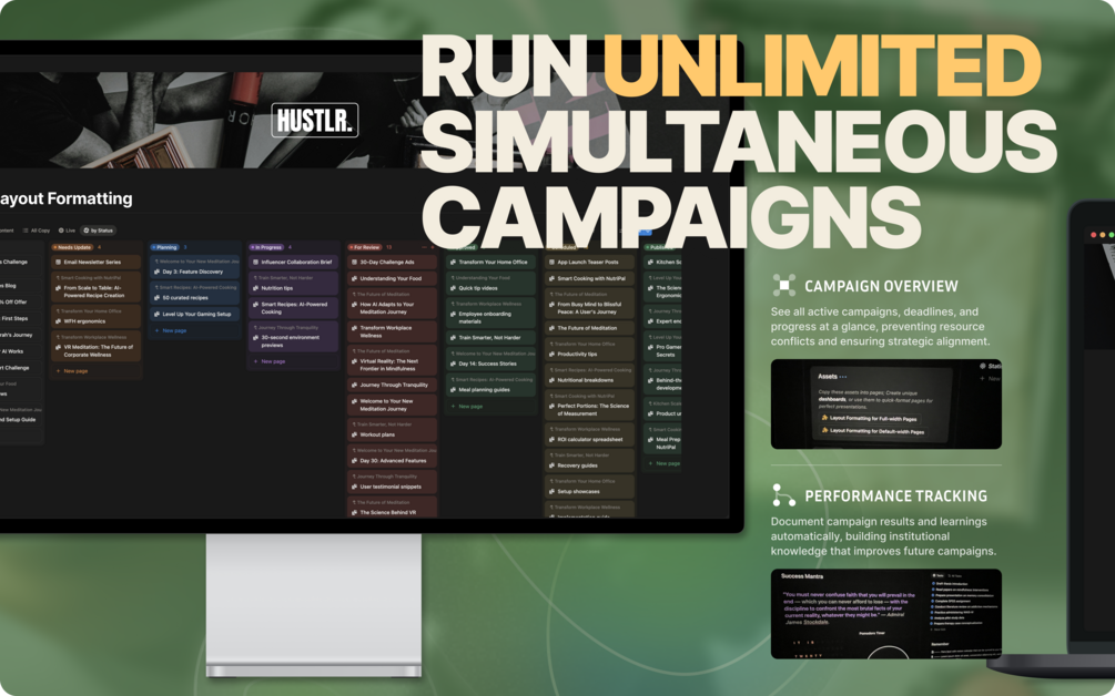 Transform marketing chaos into systematic success and launch campaigns that actually drive results – all without juggling multiple expensive tools or losing track of critical deadlines.